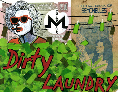 Dirty Laundry (2023) is an original moneyart by Craig CMOR Morrison and Sidarta for The Great Art Reset, on 3 real banknotes from India and Seychelles…
