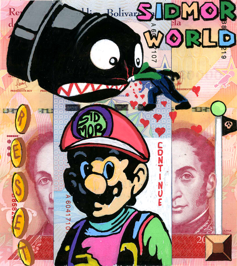 INTENDO (2023) is an original moneyart by Craig CMOR Morrison and Sidarta for The Great Art Reset, on 2 real Venezuela banknotes …