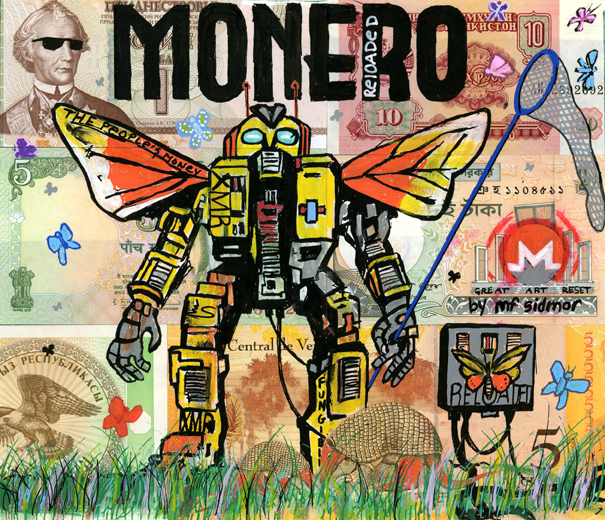 McFly (2023) is an original moneyart by Craig CMOR Morrison and Sidarta for The Great Art Reset, on several real banknotes from Venezuela and other countries…