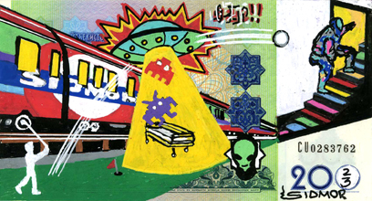 Putt Putt Golf (2023) is an original moneyart by Craig CMOR Morrison and Sidarta for The Great Art Reset, on a real banknote from Uzbekistan…