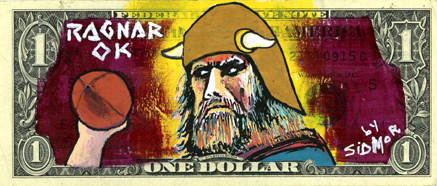 Ragnar OK (2023) is an original moneyart by Craig CMOR Morrison and Sidarta for The Great Art Reset, on a real dollar bill…